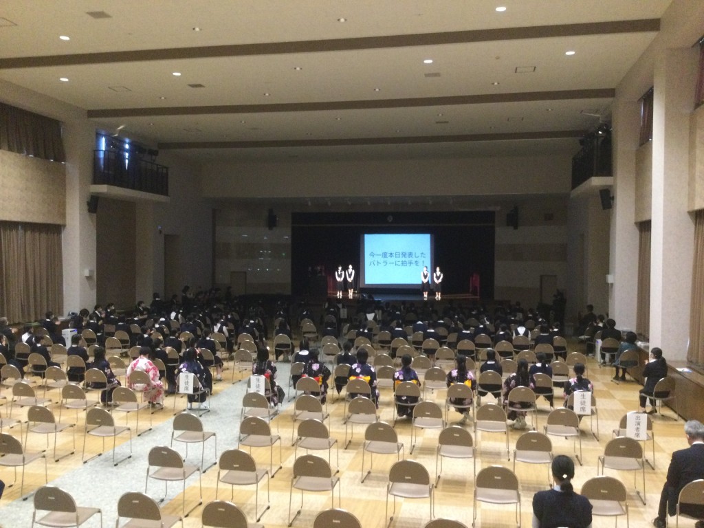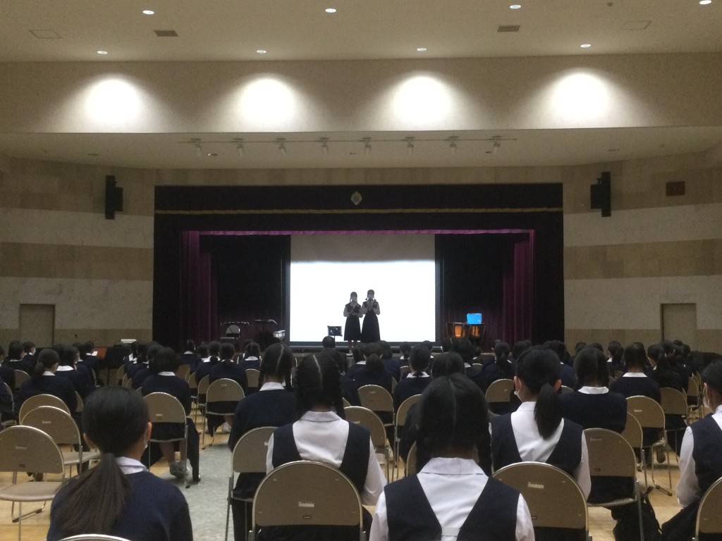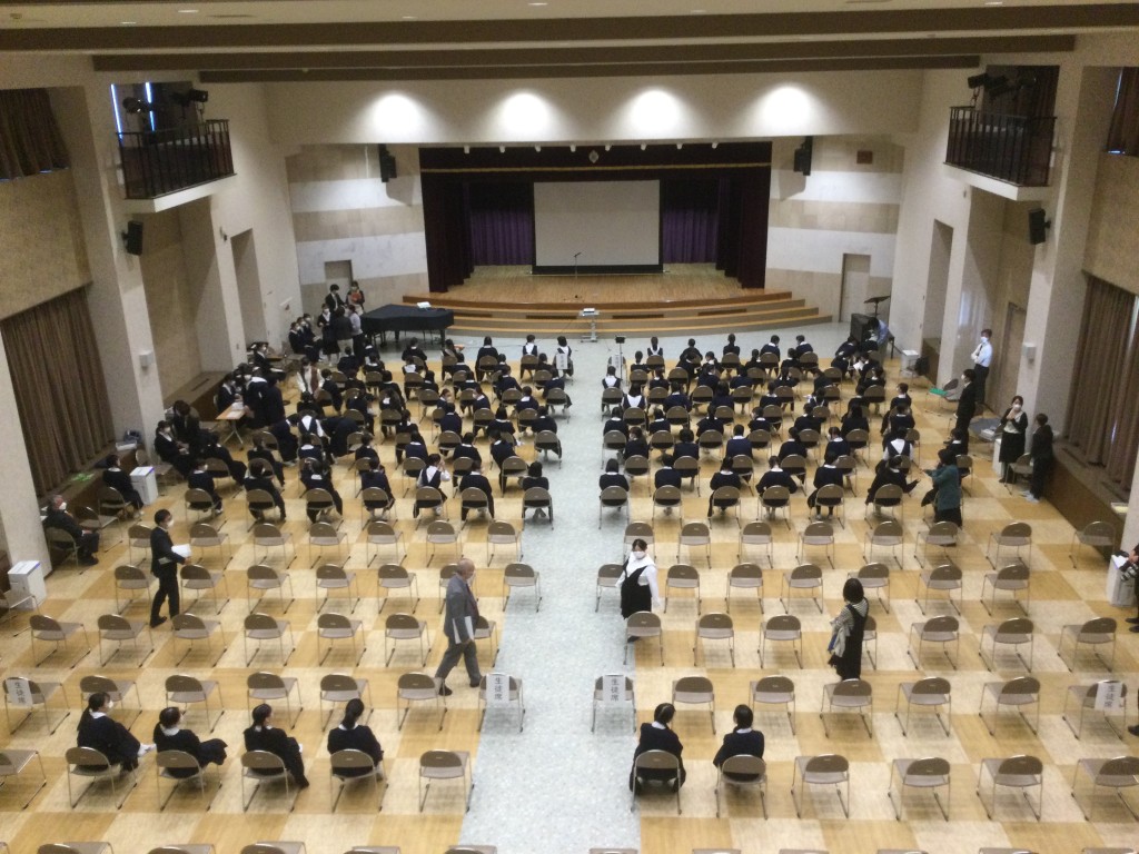 しかし、距離を取ったうえで中高生全員が講堂で舞台を鑑賞し、午後は人数制限を設けた上で、保護者の方にも見ていただくことができ、以前の活気が戻ってきたように思います。