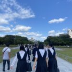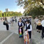 今年は昨年以上に平和公園を訪れる外国人観光客の姿が多く見られ、世界中で平和への関心が高まっていることを肌で感じることができました。生徒たちは、広島平和記念資料館の見学や、ピースボランティアの方による碑巡りの説明に真剣な表情で耳を傾け、平和の尊さを学んでいました。