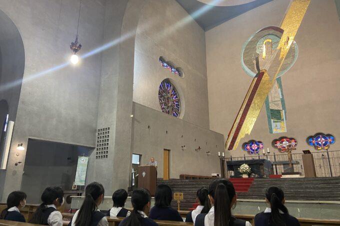 講演の最後には、近藤さんが生徒一人ひとりと優しくハグを交わしてくださいました。その温もりに包まれながら、生徒たちは平和の大切さを肌で感じ、心あたたまるひとときを過ごすことができました。