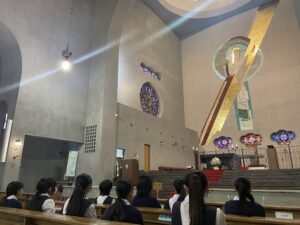 午前中は、荘厳な雰囲気に包まれた世界平和記念聖堂で、神父様から平和についてのお話を伺いました。その後、聖堂内に響き渡るパイプオルガンの演奏を鑑賞し、音楽を通して心を静めるひとときを過ごしました。