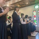 午後は、緑豊かな津和野町へ移動し、乙女峠にあるマリア聖堂を訪れました。ここでは、校長先生から信仰を貫いた聖人たちの物語を聞き、命をかけて守られた信仰の深さに触れることができました。