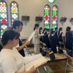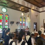 続いて訪れたカトリック津和野教会では、厳かな雰囲気の中でミサに授かり、神父様から「隣人を大切にする中に宝を見つけてください」とお言葉をいただきました。