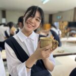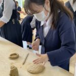 次に向かった萩焼の工房では、粘土を手でこねて形を作る「手捻り体験」に挑戦しました。生徒たちは真剣な表情で創造力を働かせながら、自分だけの作品を完成させました。焼き上がりが楽しみです!