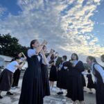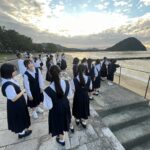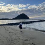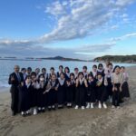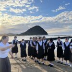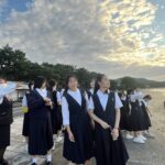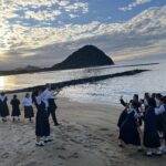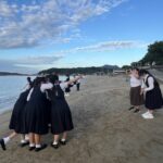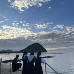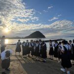 一日の最後は「日本の夕日百選」に選ばれている菊ヶ浜へ行きました。海に沈む美しい夕日を眺めながら、生徒たちは笑顔いっぱいで一日を締めくくりました。