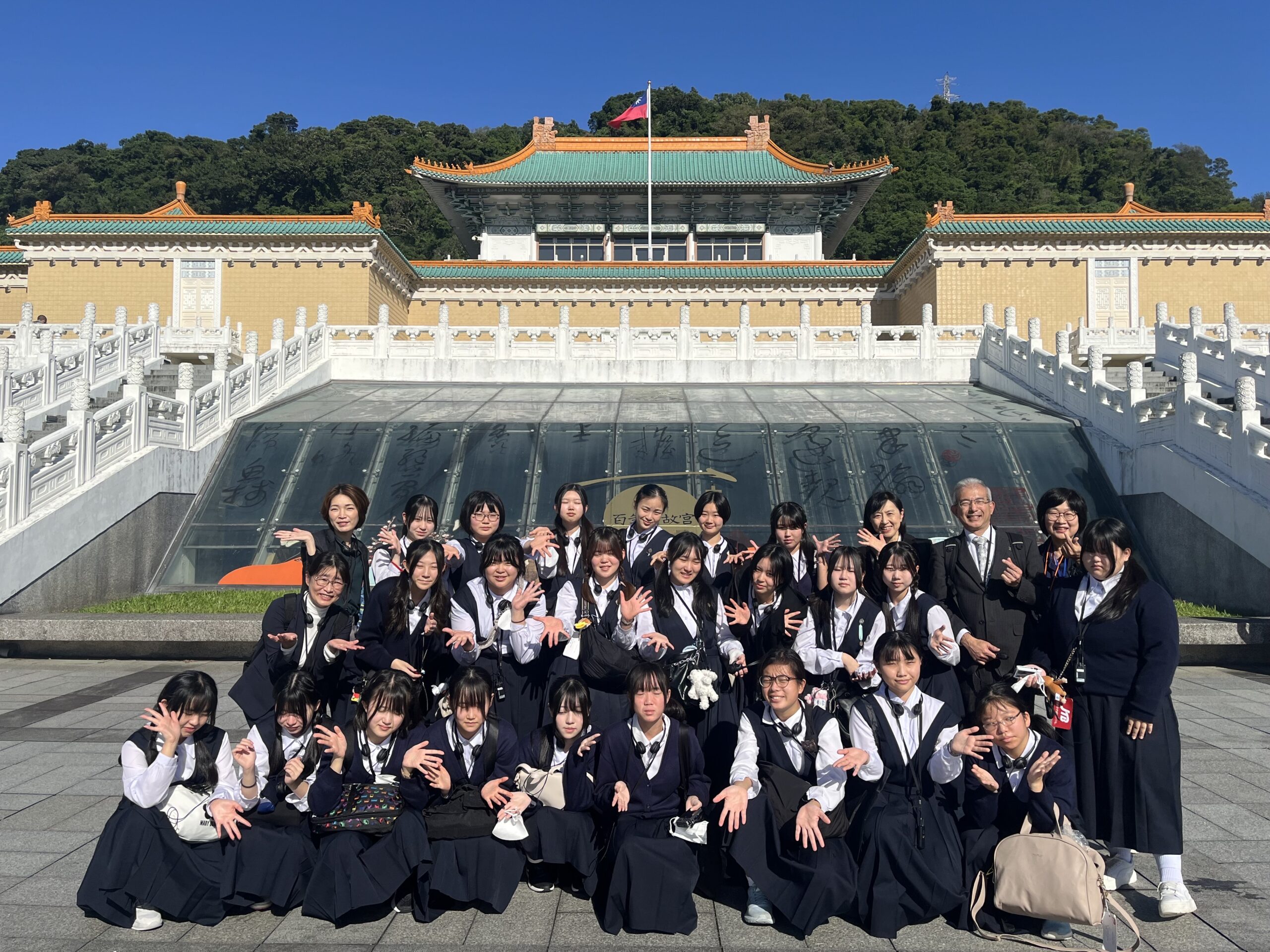 午前中は、台北市内の故宮博物院を訪れました。美しい展示物や精巧な工芸品を前に、生徒たちは興味深そうにガイドの説明に耳を傾けていました。ガイドブックでは見ていたものも実際に目にすることで、台湾の歴史や文化をより深く感じる学びの時間となりました。