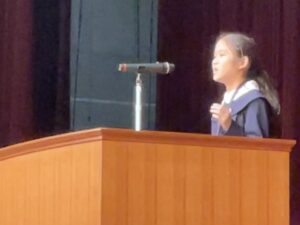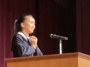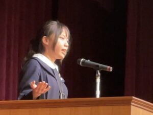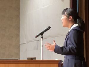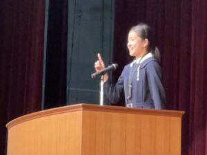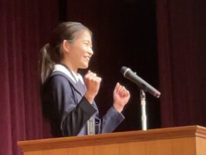 中学1・2年生は英語の暗誦コンテストに挑戦。中学3年生から高校2年生までは、英語によるスピーチコンテストを行いました。各学年の代表として選ばれた生徒たちは、堂々とステージに立ち、言葉だけでなく表情やジェスチャーも駆使して、自分の想いを観客に届けてくれました。