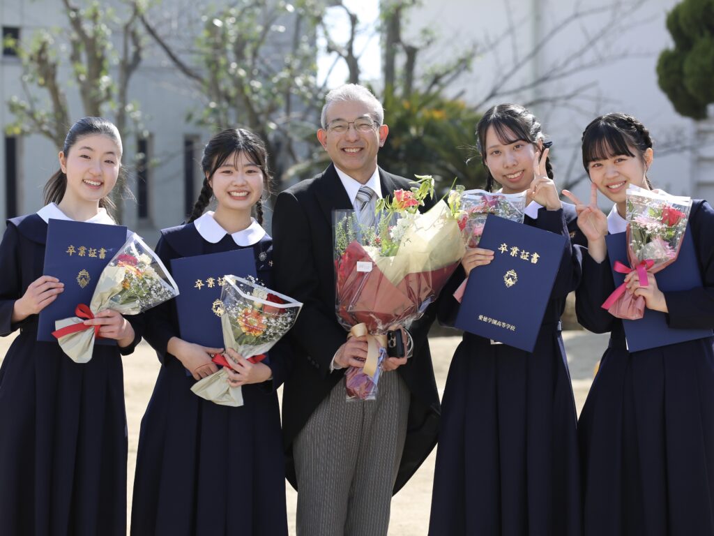 愛徳学園に残る私たちは、また、新しい後輩たちが愛徳学園にやってくる準備を始めます。希望をもって入学してくる愛徳生たちに、62回生が残してくれたものを伝統として引き継いでいけたらこれほど嬉しいことはありません。皆さんが残してくれた、「団結力」「誠実さ」「努力」「想像力」「勇気」……何よりも前向きにがんばるという「心」を、4月にやってくる新入生たちに伝える日が今から待ち遠しいです。(校長 松浦直樹)