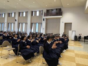 愛徳学園の修業式は「修了証書授与式」として厳粛に行います。張り詰めた空気の中で進む式ですが、最後に全員で行う“いつもの儀式”によって、会場がふわっと温かくなり、表情が一気に明るくなりました。この切り替わりこそ、愛徳学園の「メリハリ」の真骨頂。そして、愛徳学園ワンチームの温かさを全員で共有できる、たまらない瞬間でした。