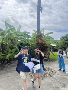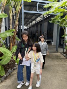 The day started with a campus tour , followed by a scavenger hunt activity. As they walked around the campus, the students worked together to find answers to various quizzes. When they came across unfamiliar words, they naturally asked questions in English, such as “What does this mean?” It was encouraging to see them making an effort to communicate in English, even when they found it challenging.
